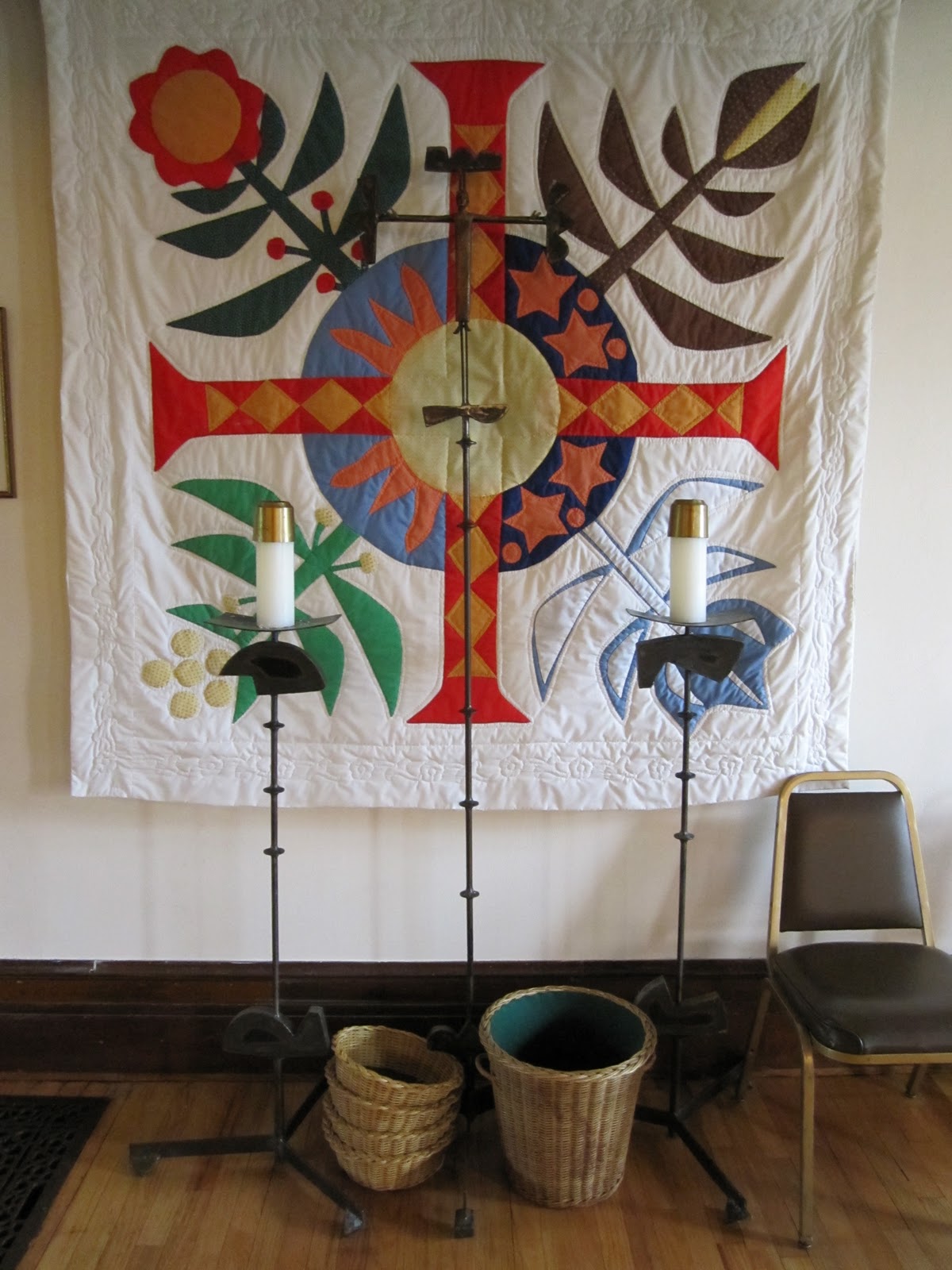 Bruno created a large chandelier, several candle-holders/pavement lights, and a large Pascal candleholder for the Church of the Holy Infancy--guessing at the date, ca 1977.